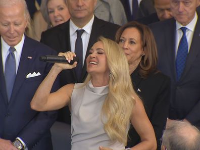 The American country singer walked out on stage inside the US Capitol Rotunda after Donald Trump’s inauguration speech to sing a rendition of America The Beautiful.